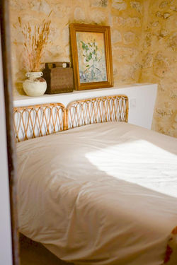 Coquelicot est un studio de 30 m² conçu pour accueillir deux personnes. Nous l’avons imaginé dans l’esprit d’une chambre d’hôtes, tout en y intégrant un coin kitchenette et un espace repas pour vous offrir plus d’autonomie durant votre séjour.